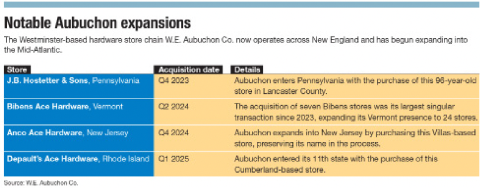 A key factor in Aubuchon’s expansion was its 2023 decision to join cooperative, founded in 1924 by a small group of Chicago hardware store owners who banded together to pool buying power.