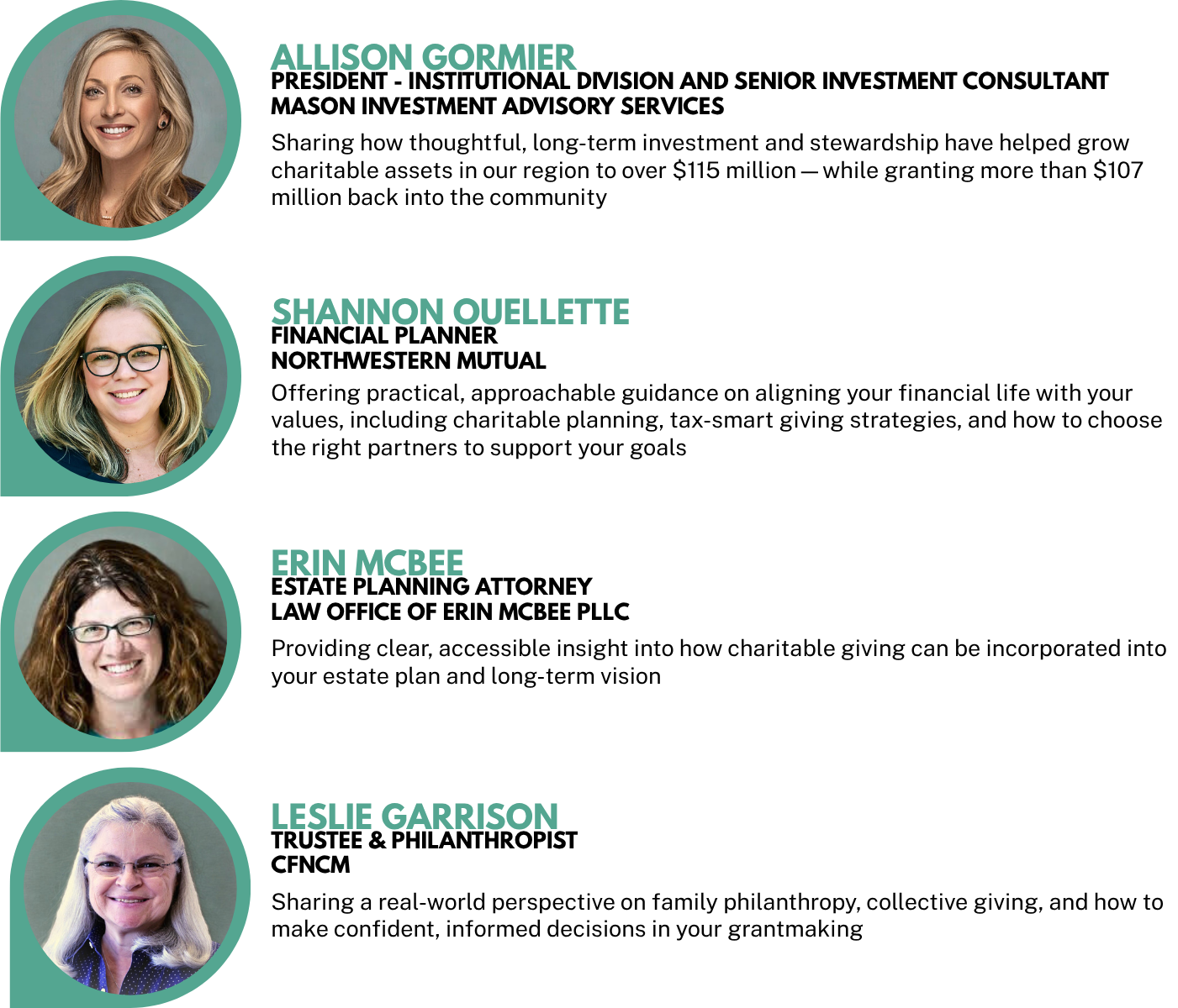 Join us for a welcoming, educational conversation designed for women at every stage of their philanthropic journey—from giving circle participants to those exploring long-term charitable planning.